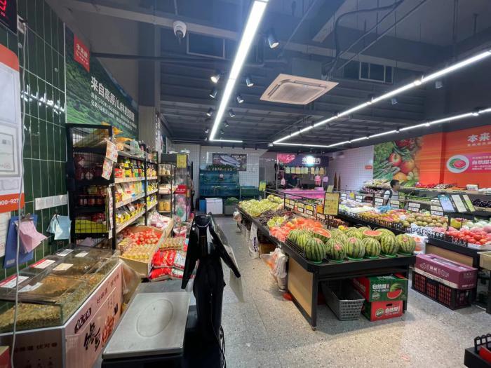 店铺位于洪山区青菱乡鄂旅投书院世家小区,临街门面,距离200米有一所小学,一所中学,是目前小区唯一一家全面性生鲜市,楼上自己搭有阁楼,楼上可以住人,可以节约房租,设备齐全,双门头门口开阔,可以外摆出外场,城管基本上不管,目前店日均销售7000左右,节假日销售额会更高,有三个社群,每个群200人左右,有很好的会员群众基础,马上9月1号开学以后早高峰晚高峰人流量非常的大,除了正常的四五点钟小孩放学的晚高峰以外,到了广场舞时间还有一个小的晚高峰,如果想挣钱,就不要犹豫,错过了就是跟钱过不去