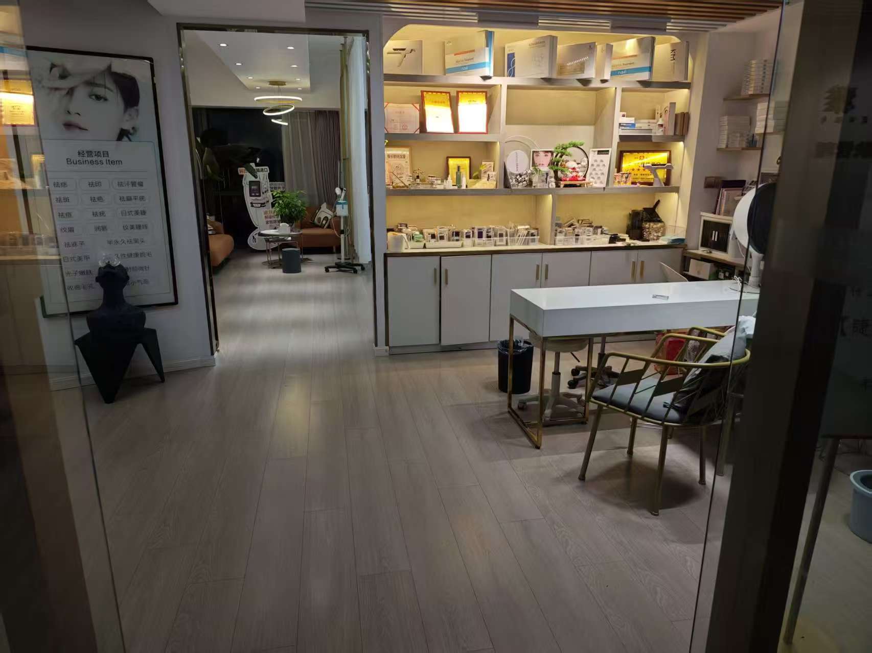 2:店铺面积105平。租金5000/月。现正常营业中。3:适合经营:美容美发,产后修复,纤体瘦身,纹绣刺青,美甲美睫,头疗,养发,植发等行业不限。同行业老板接手即可营业,节约开新店时间和成本。