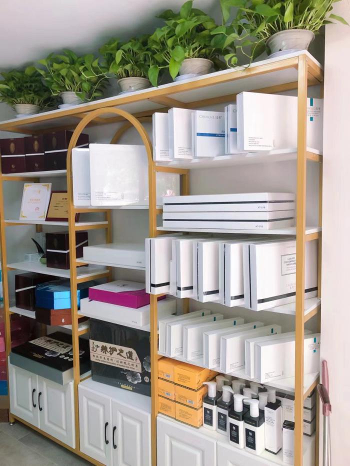 店铺离地铁站也很近 交通方便 店铺上下两层 上面有三个房间,还有洗手间 可以住人 楼下有两个房间 四个美容床 还可以做美甲美睫