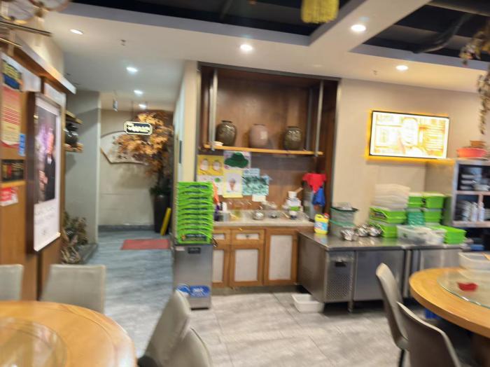 门面介绍:本店目前经营特色餐饮,经营状况良好,经营面积700平,门头宽广,显眼,租金55000元/月,装修高档大气,设有豪华包房大厅,设施设备齐全,厨房操作空间大,因本人精力不够整体转让,价格面议,捡到就是挣到,欢迎有缘人前来考察,机不可失 看店提前联系不要影响生意